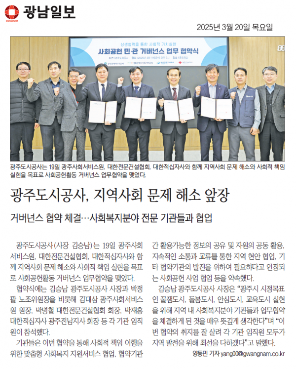 광주도시공사, 지역사회 문제 해소 앞장 (광남일보)