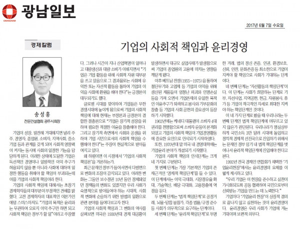 HOME > KOSCA광주 소개 > 기업의 사회적 책임과 윤리경영 (광남일보) > 보도자료