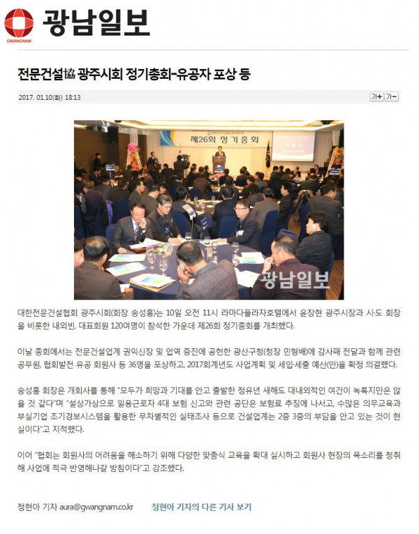대한전문건설협회 광주시회 제26회 정기총회 (남도일보)