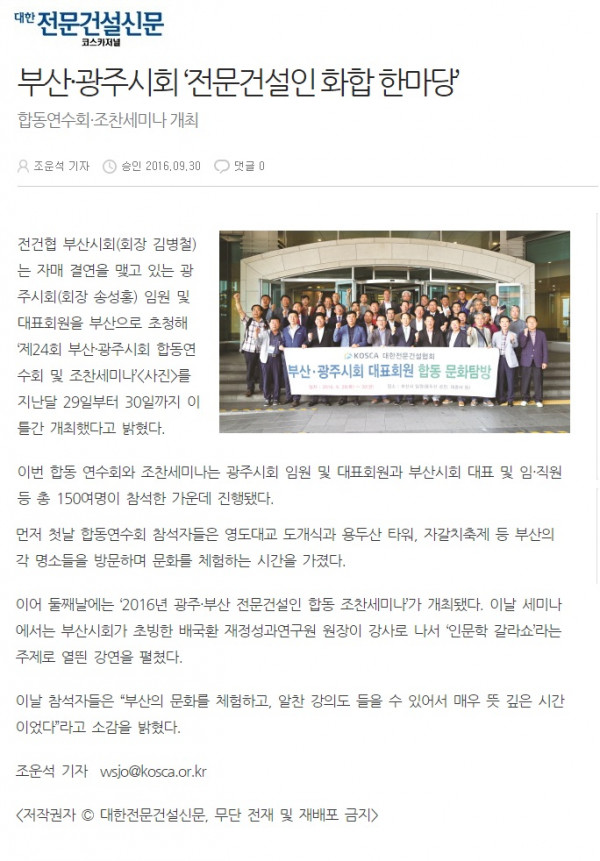 부산·광주시회 ‘전문건설인 화합 한마당’ (대한전문건설신문)
