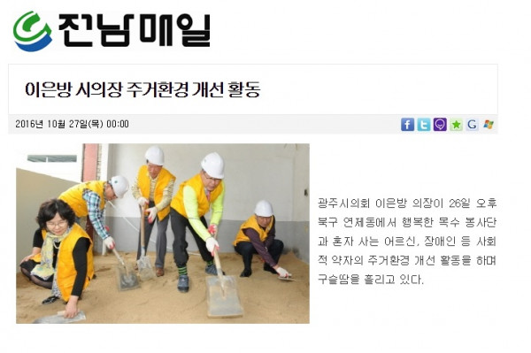 이은방 광주시의장, 저소득 가정 집수리 봉사 (호남매일)