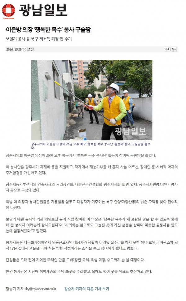 이은방 광주시의장, 저소득 가정 집수리 봉사 (호남매일)