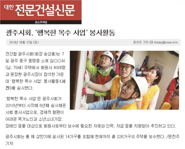 전문건설협 광주시회 주택 무상보수 호응 (무등일보)