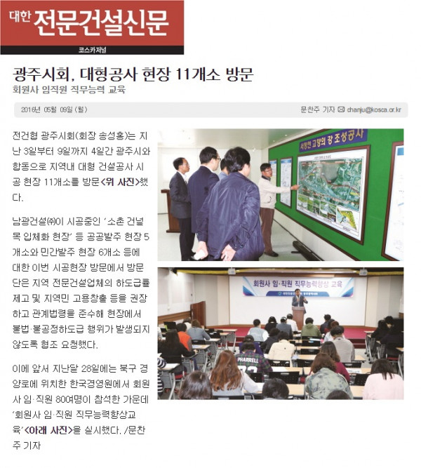 HOME > KOSCA광주 소개 > 광주시회, 대형공사 현장 11개소 방문 (대한전문건설신문) > 보도자료
