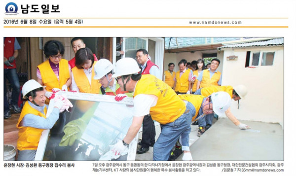 윤장현 시장, 김성환 동구청장 집수리 봉사 (남도일보)