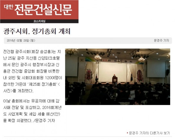 광주시회, 정기총회 개최 (대한전문건설신문)