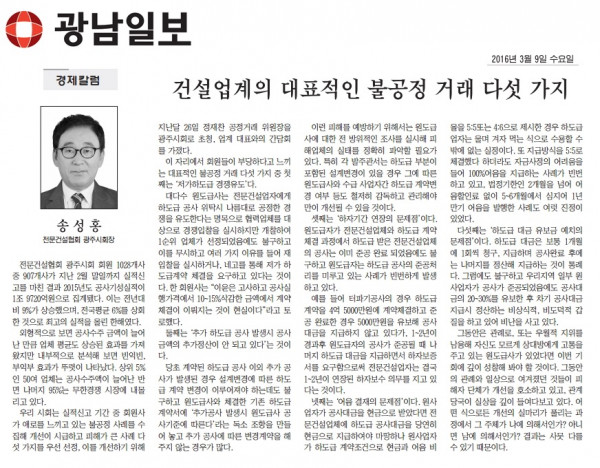 HOME > KOSCA광주 소개 > 건설업계의 대표적인 불공정 거래 다섯 가지 (광남일보) > 보도자료