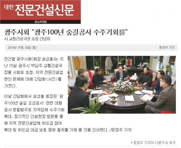광주시회 “광주100년 숲길공사 수주기회를” (대한전문건설신문)
