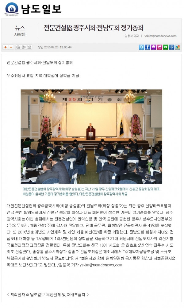 전문건설 광주시회.전남도회 정기총회 (남도일보)
