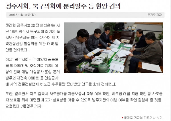 광주시회, 북구의회에 분리발주 등 현안 건의 (대한전문건설신문)