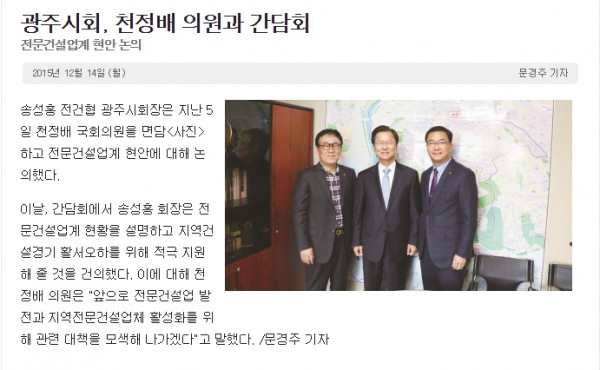 광주시회, 천정배 의원과 간담회 (대한전문건설신문)