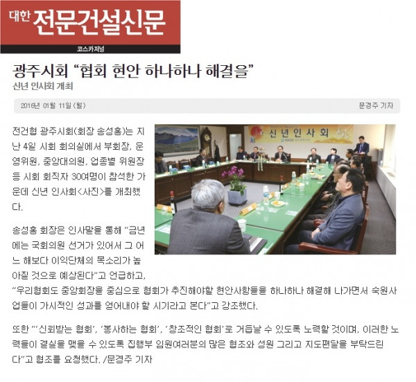 광주시회 “협회 현안 하나하나 해결을” (대한전문건설신문)