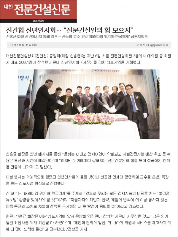 전건협 신년인사회… “전문건설인의 힘 모으자” (대한전문건설신문)