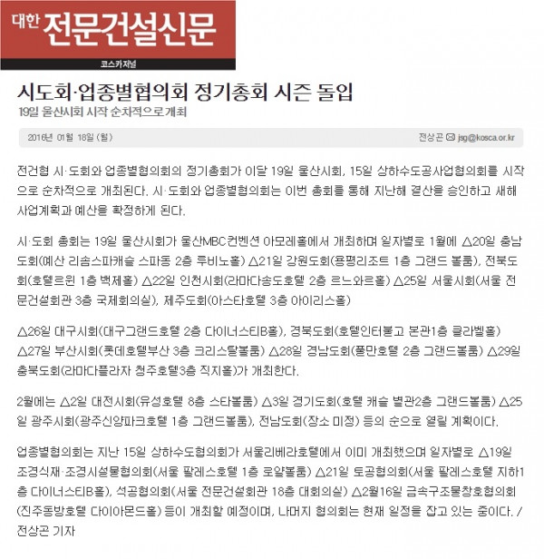 시도회·업종별협의회 정기총회 시즌 돌입 (대한전문건설신문)