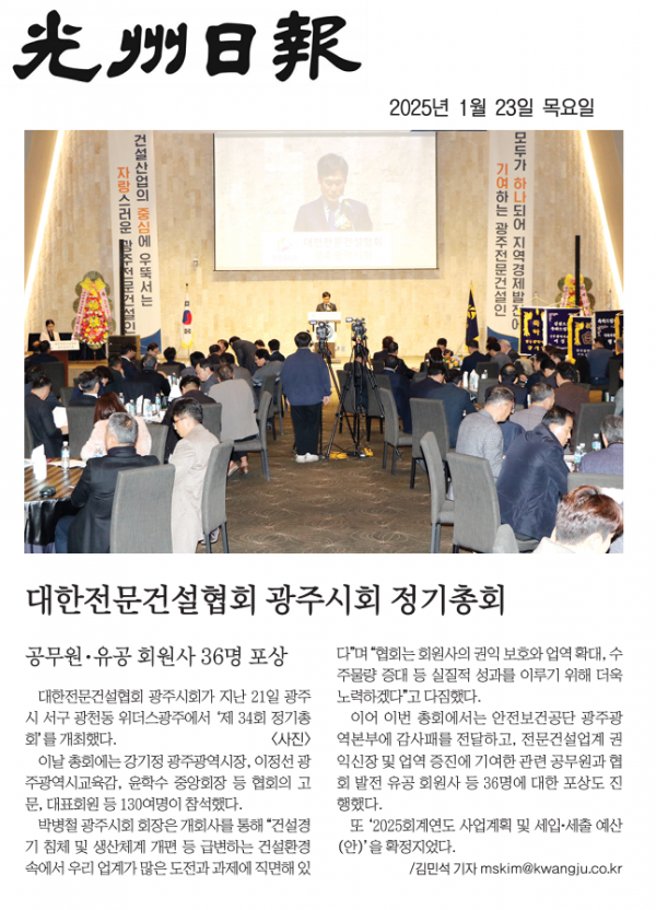 전문건설協 광주시회 '정기총회' 성료 (광주매일신문)