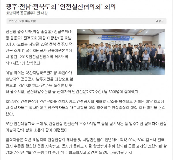 호남 3개 시도회, ‘건설안전 UCC 공모’ 독려 (대한전문건설신문)