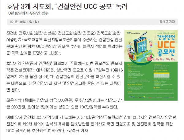 호남 3개 시도회, ‘건설안전 UCC 공모’ 독려 (대한전문건설신문)
