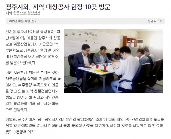 광주시회, 지역 대형공사 현장 10곳 방문 (대한전문건설신문)