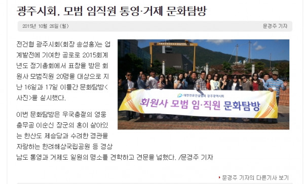 광주시회, 모범 임직원 통영·거제 문화탐방 (대한전문건설신문)