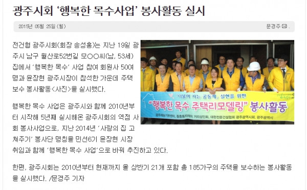 광주에 '행복한 목수 봉사단' 떴다 (광남일보)