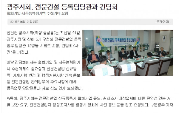 광주시회, 전문건설 등록담당관과 간담회 (대한전문건설신문)
