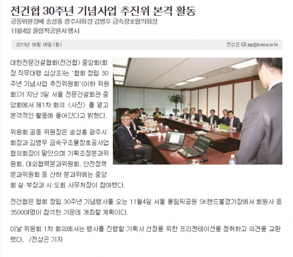 HOME > KOSCA광주 소개 > 전건협 30주년 기념사업 추진위 본격 활동 (대한전문건설신문) > 보도자료