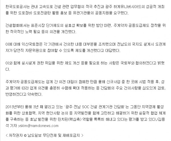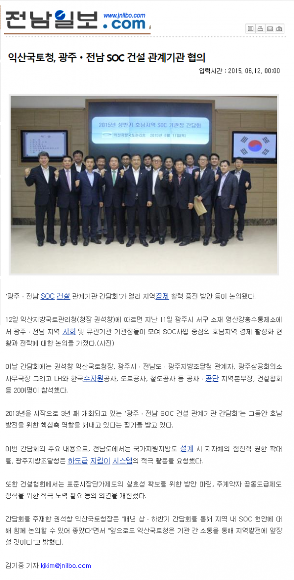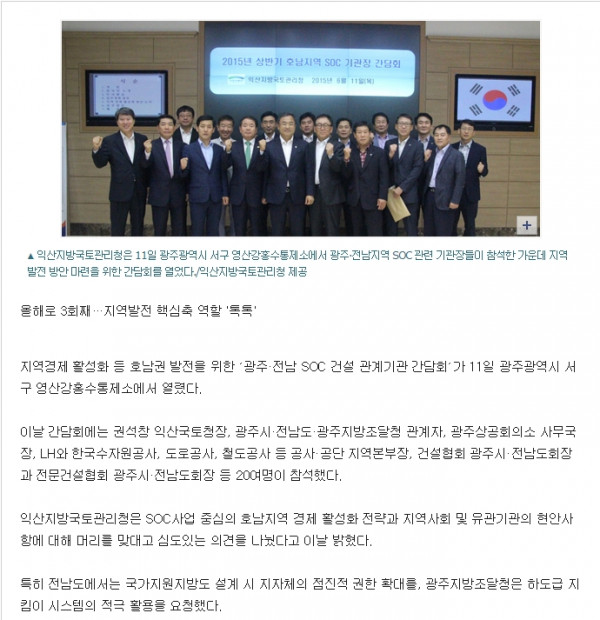 HOME > KOSCA광주 소개 > 광주.전남 SOC 유관기관 간담회 (전남일보, 남도일보) > 보도자료