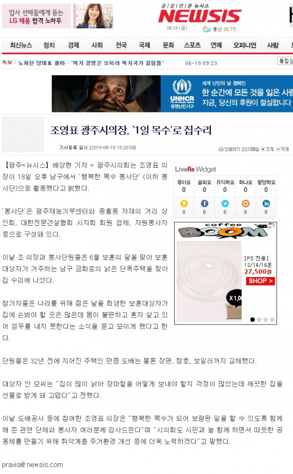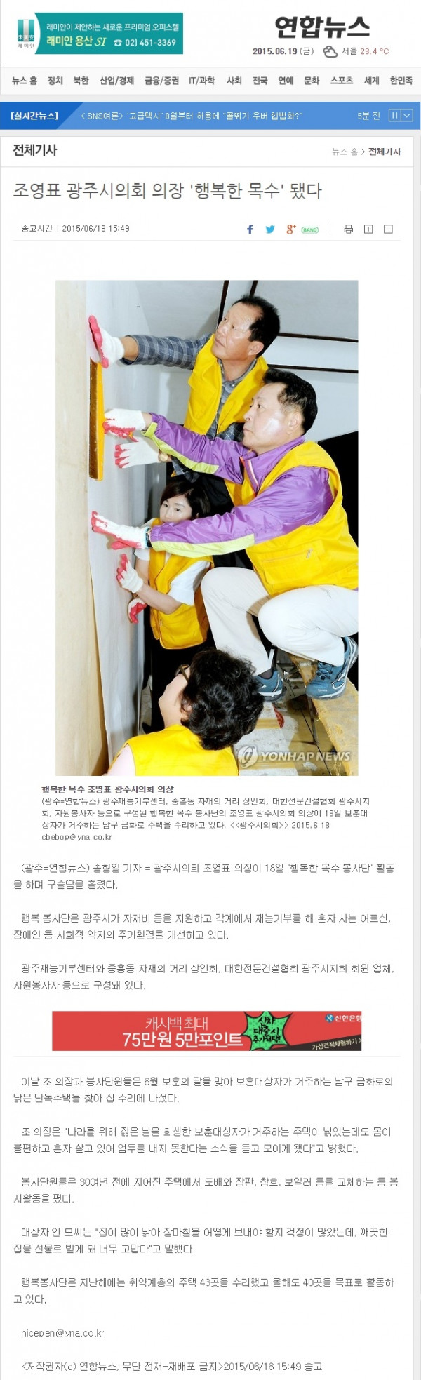 조영표 광주시의회 의장, "행복한 목수" 봉사 (광남일보, 광주매일신문)