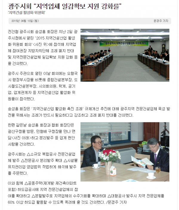 광주시회 "지역업체 일감확보 지원 강화를" (대한전문건설신문)