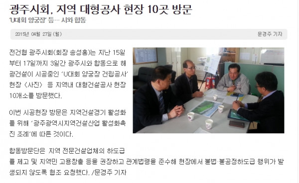 광주시회, 지역 대형공사 현장 10곳 방문 (대한전문건설신문)