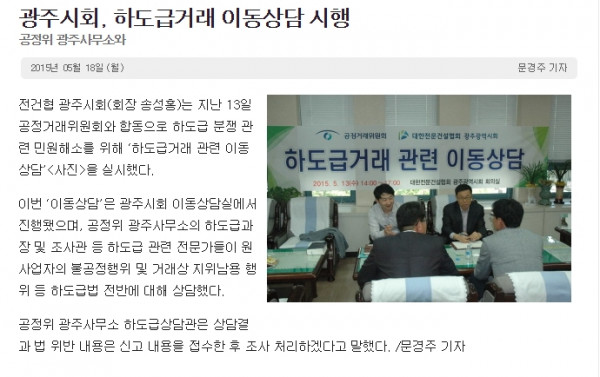 광주시회, 하도급거래 이동상담 시행 (대한전문건설신문)