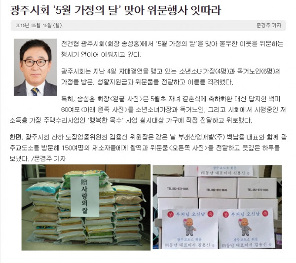 HOME > KOSCA광주 소개 > \'5월 가정의 달\' 맞아 위문행사 잇따라 (대한전문건설신문) > 보도자료