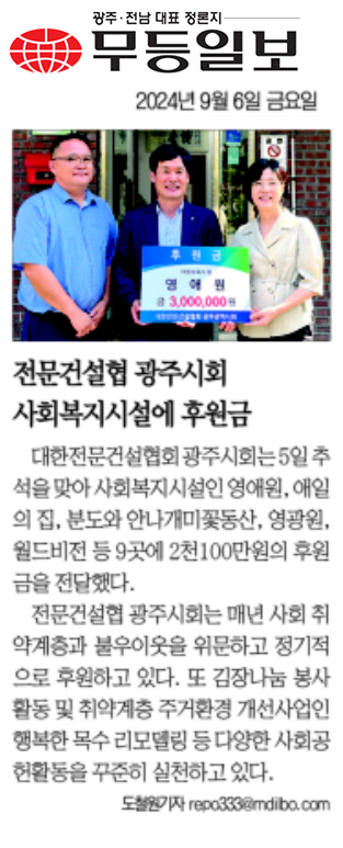 전문건설協 광주시회, 복지시설 후원금 전달 (광주매일신문)