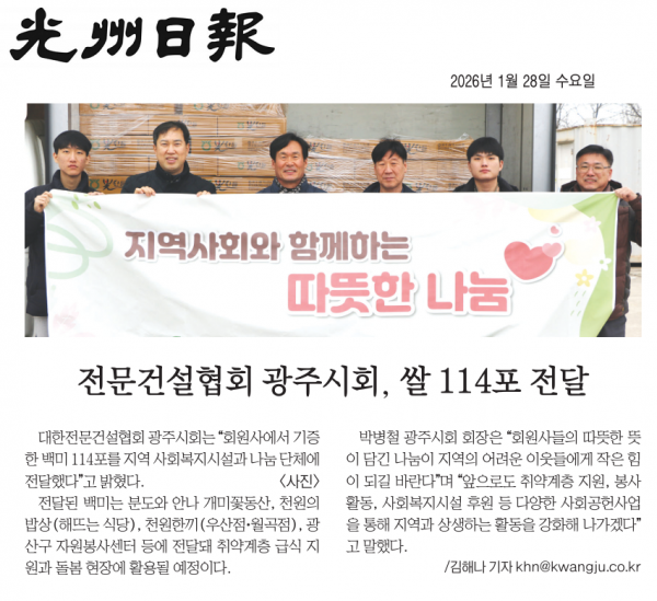 전문건설협회 광주시회, 쌀 114포 전달 (광주일보)